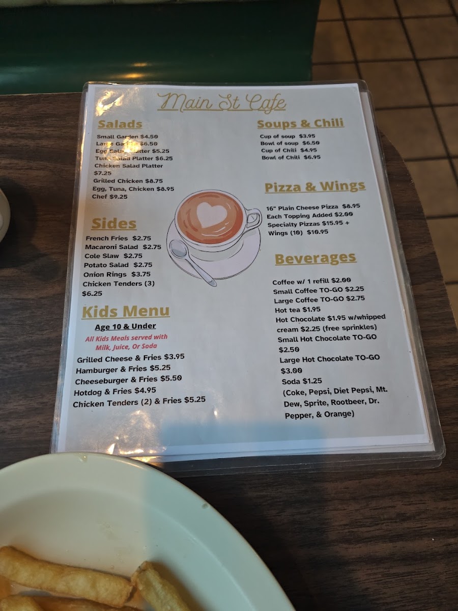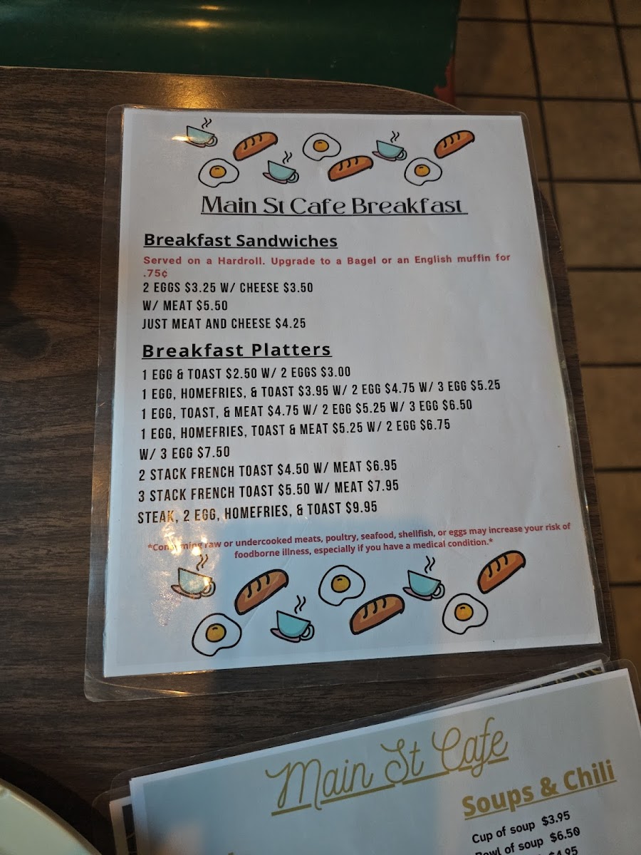 Introducing the menu at Main St. Cafe - Susquehanna is a delightful experience. Nestled in a picturesque location overlooking the creek, this charming eatery offers a variety of well-priced options that cater to all tastes. Start your day with favorites like the Chicken Salad Platter or the hearty Grilled Chicken, and don't miss the delicious breakfast items praised by regulars.